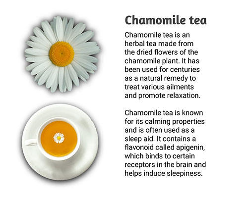 • Promotes Relaxation and Sleep: Chamomile tea is well-known for its calming properties. It contains compounds that may bind to certain receptors in the brain, promoting relaxation and reducing anxiety.